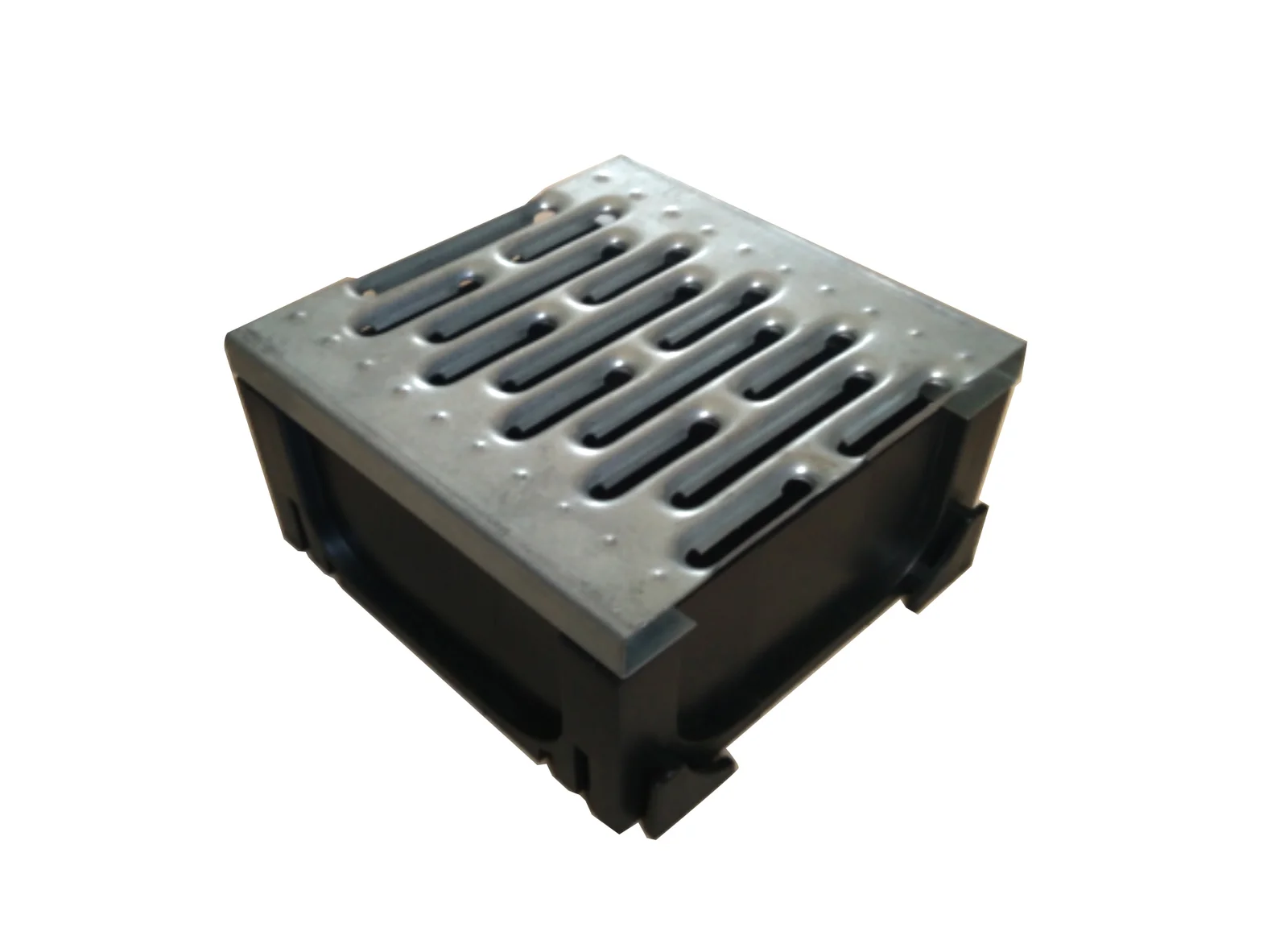 TITAN Channel Drain LEAF GUARD with outlet connector Dimensions: 125x125x150mm Color: Black Weight: 0.17kgs Material: 100% recycled polypropylene